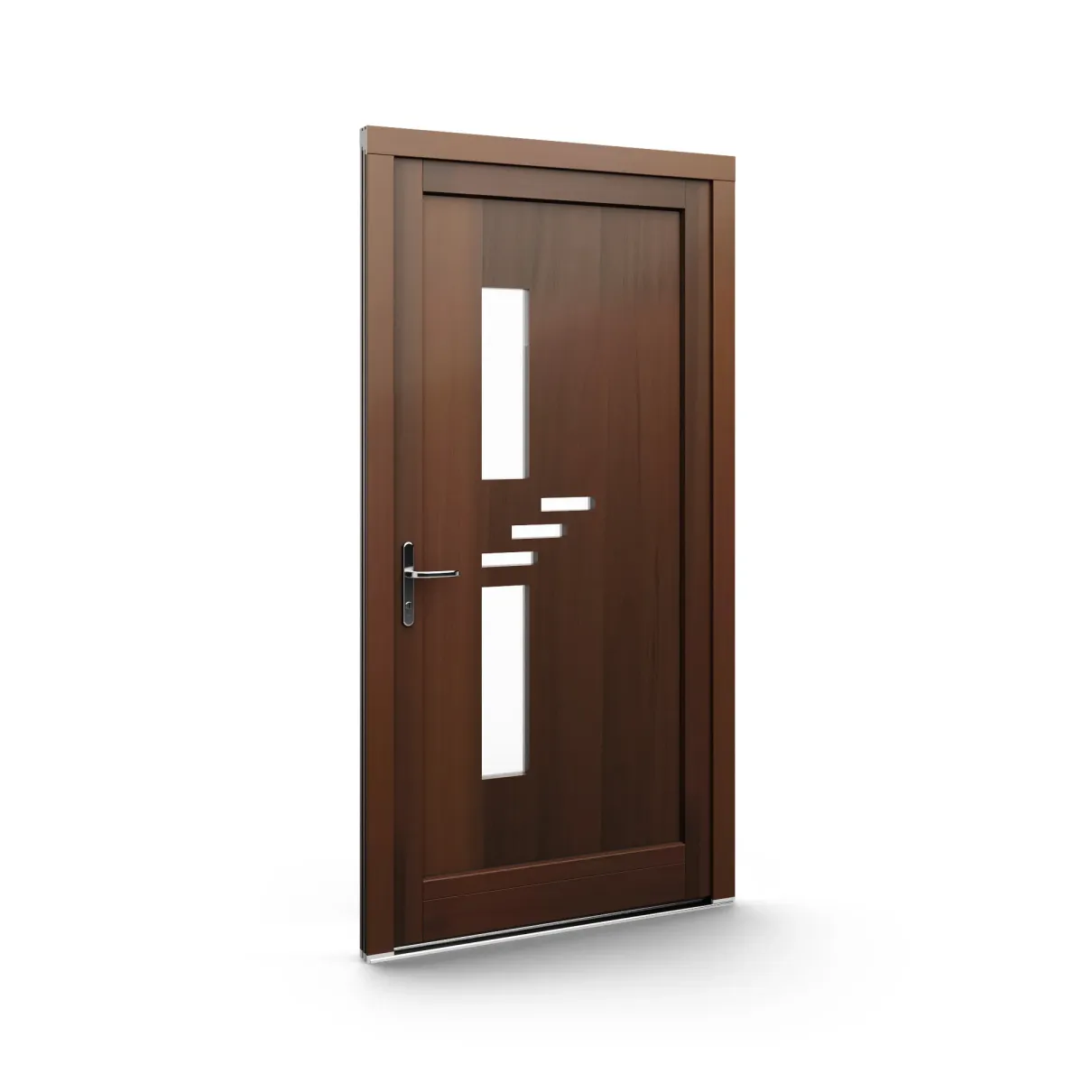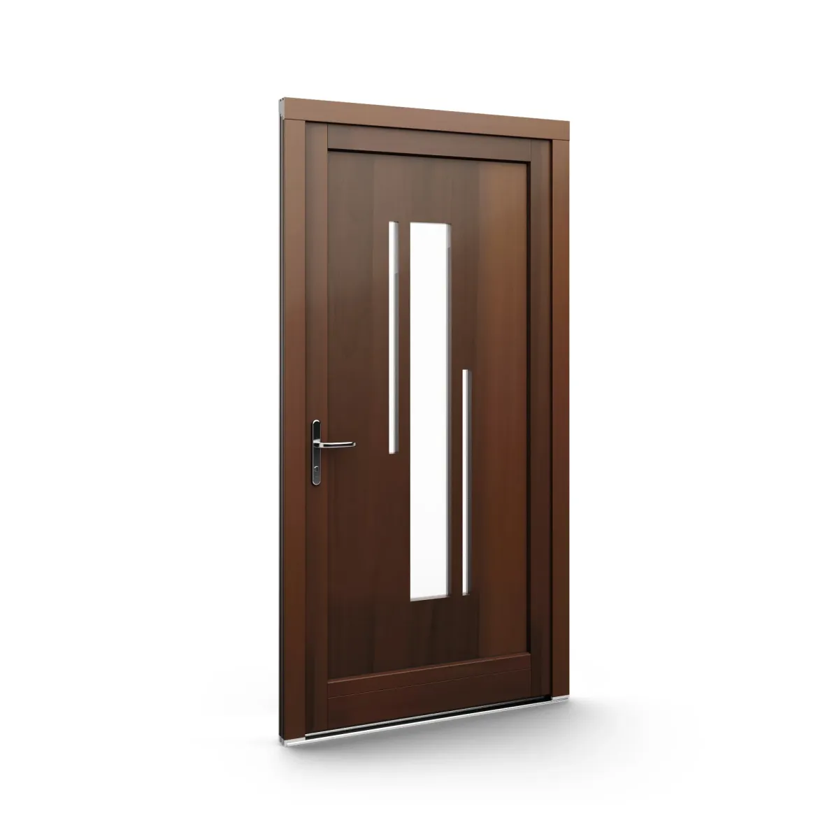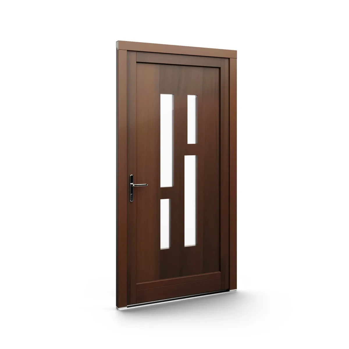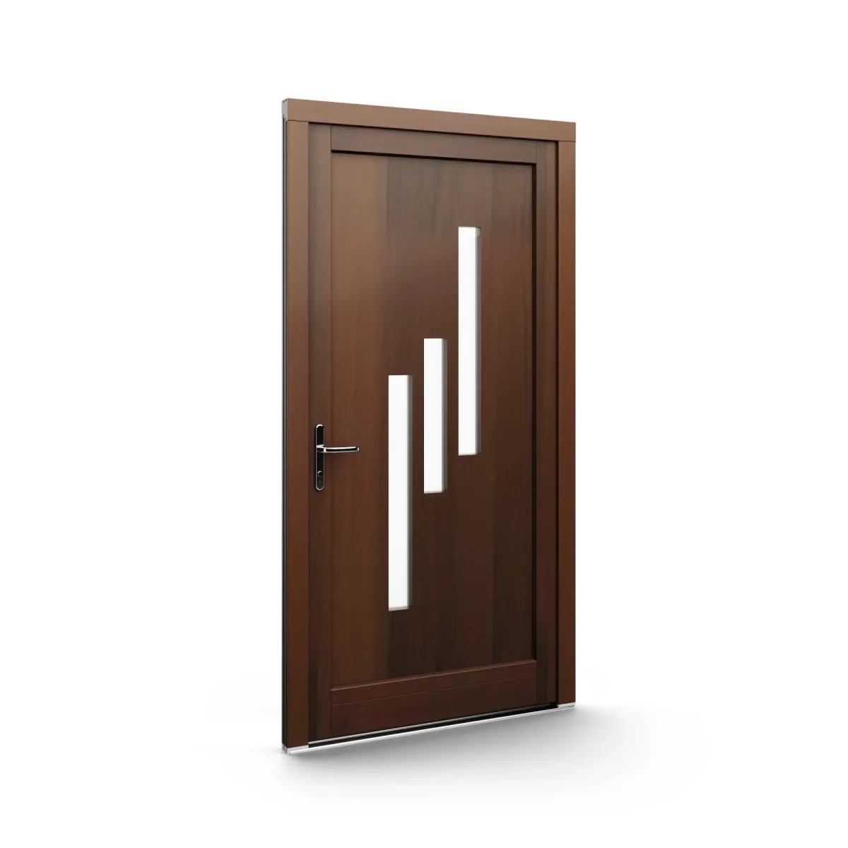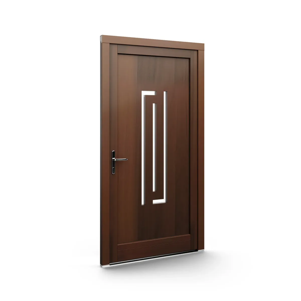GJ WoodLine verbindet traditionelle Optik mit moderner Paneeltechnik: mehrschichtig aufgebaute Holzpaneele mit wärmedämmendem Kern, Sicherheitsverglasung und zwei eleganten Front-Varianten. Das Ergebnis sind Haustüren mit natürlicher Ausstrahlung, langlebiger Qualität und zeitlosem Stil – für Eingänge, die Bestand haben.