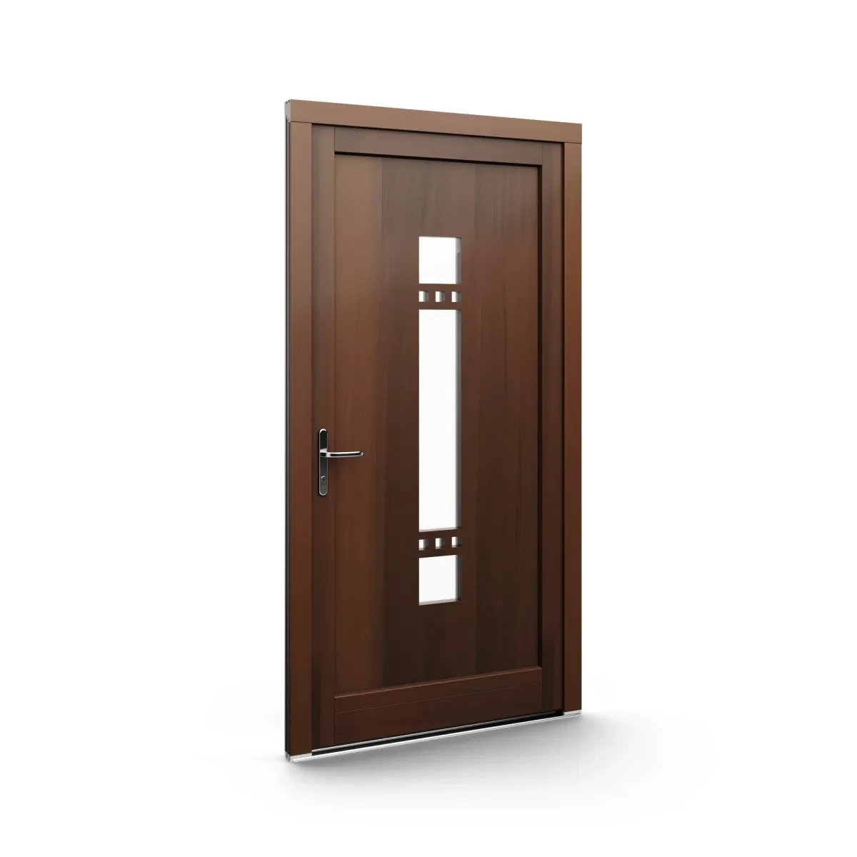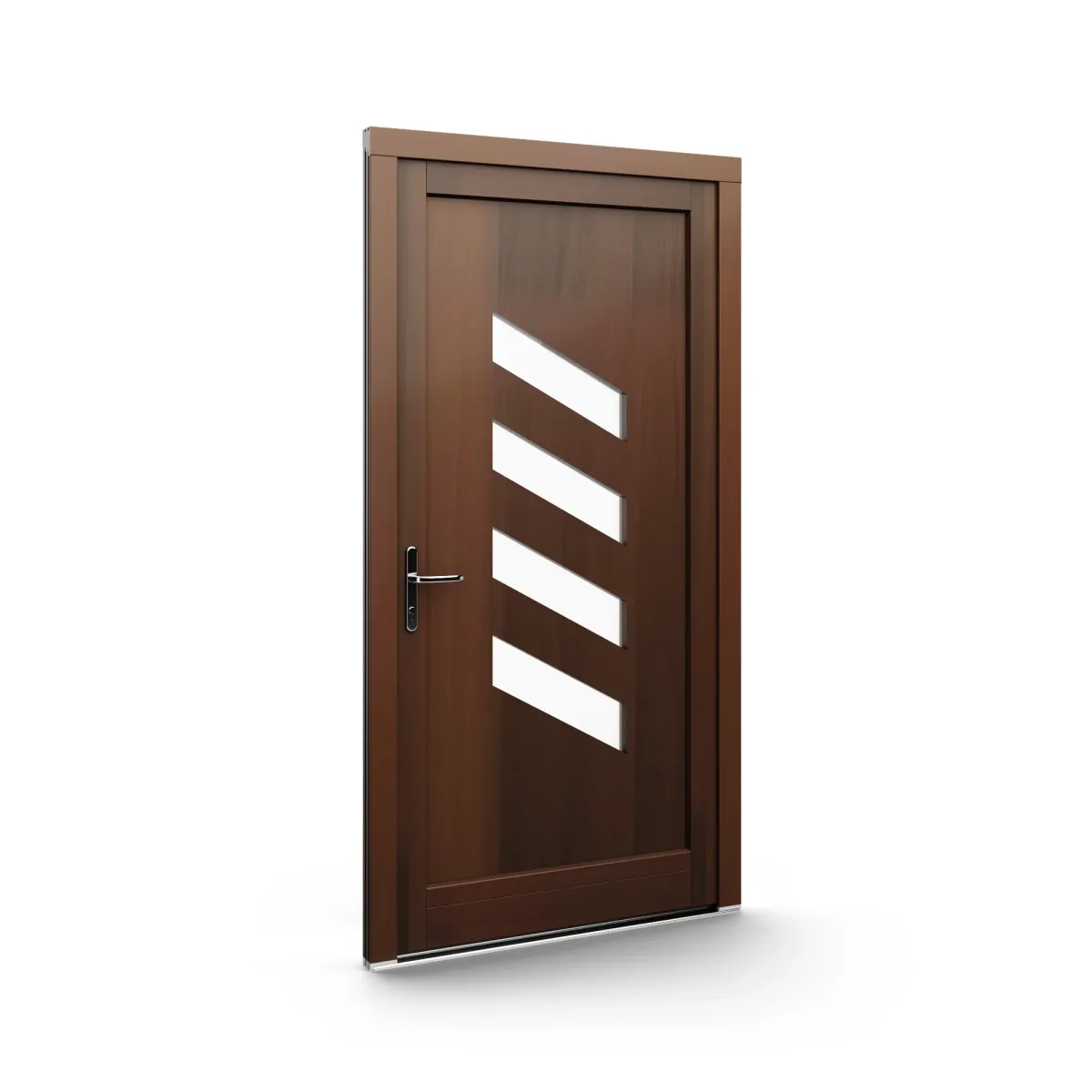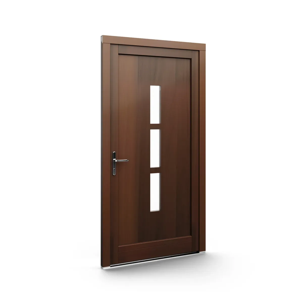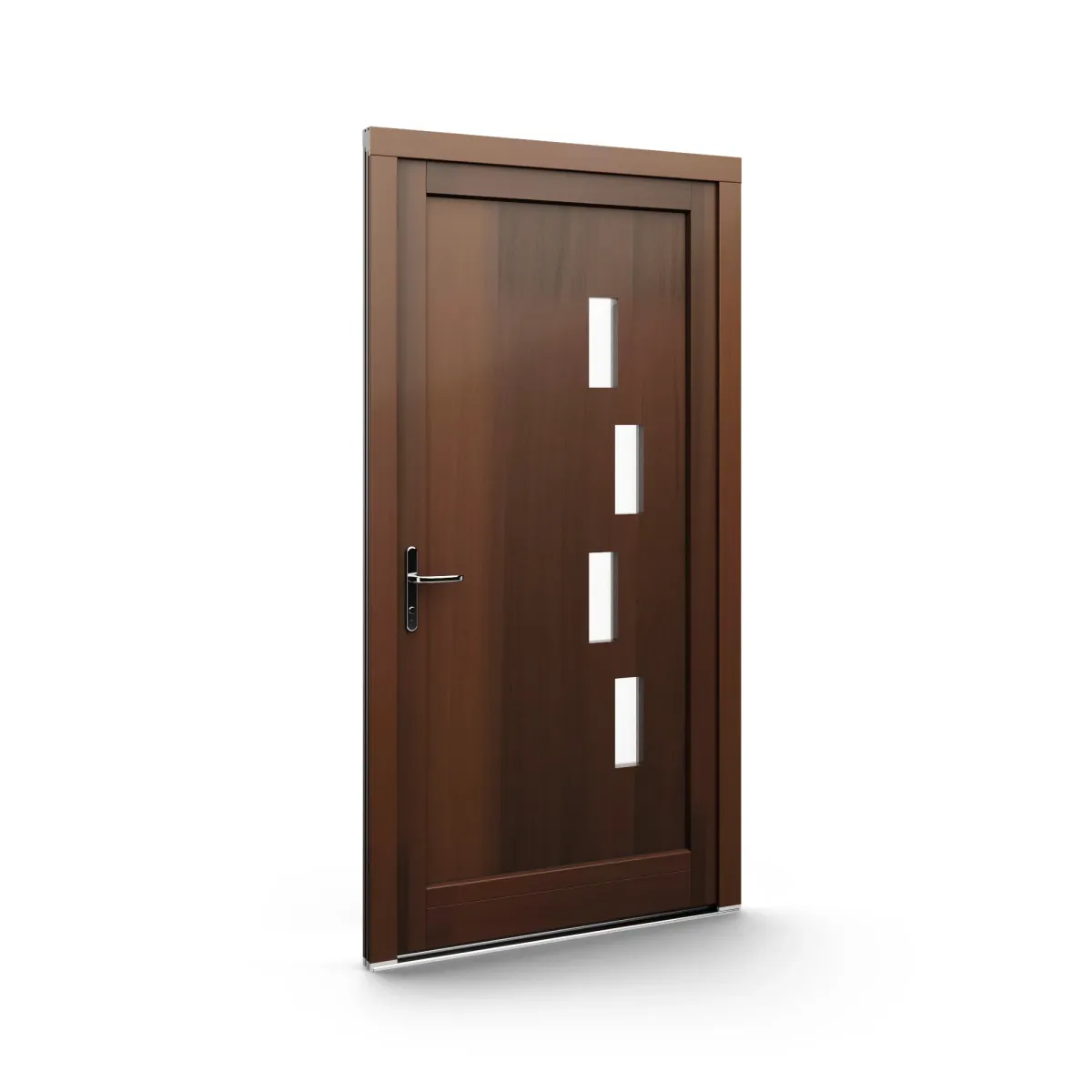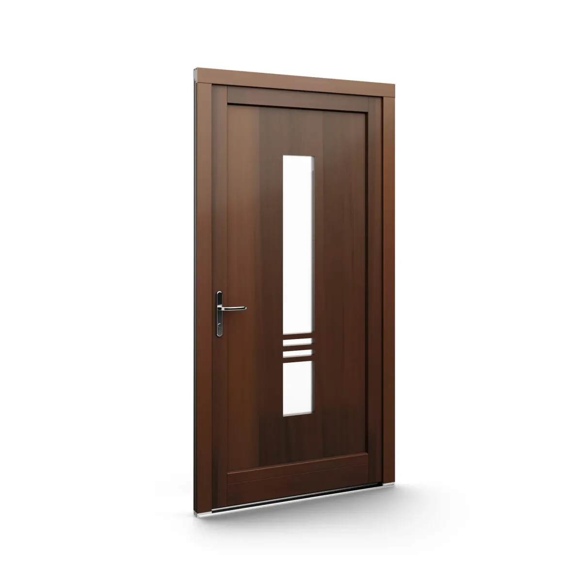 GJ WoodLine verbindet traditionelle Optik mit moderner Paneeltechnik: mehrschichtig aufgebaute Holzpaneele mit wärmedämmendem Kern, Sicherheitsverglasung und zwei eleganten Front-Varianten. Das Ergebnis sind Haustüren mit natürlicher Ausstrahlung, langlebiger Qualität und zeitlosem Stil – für Eingänge, die Bestand haben.