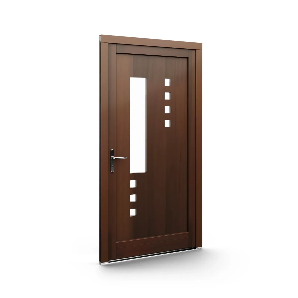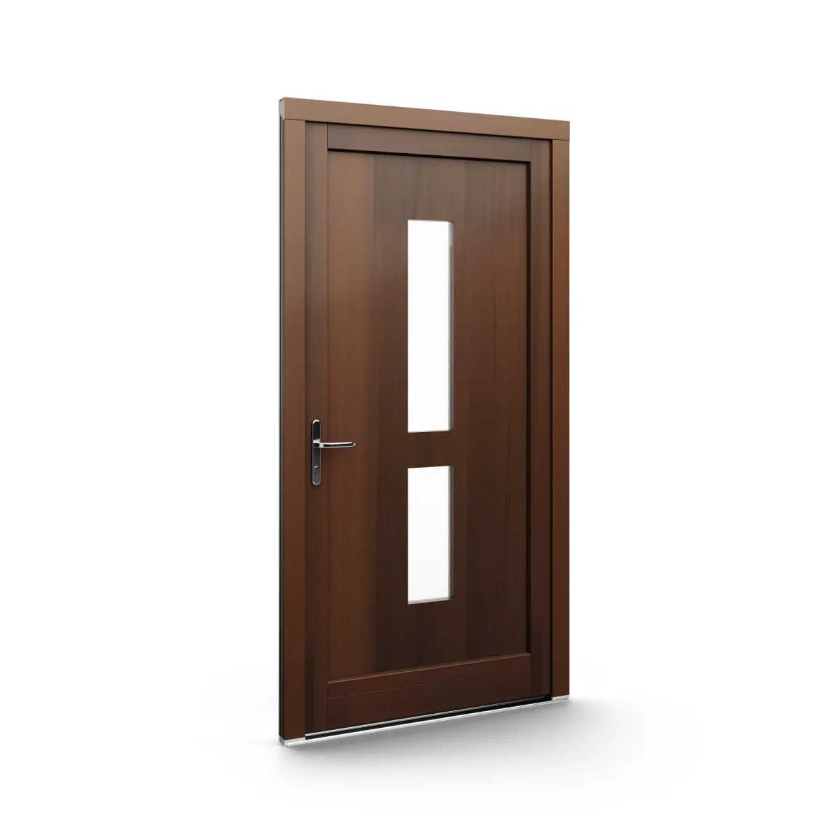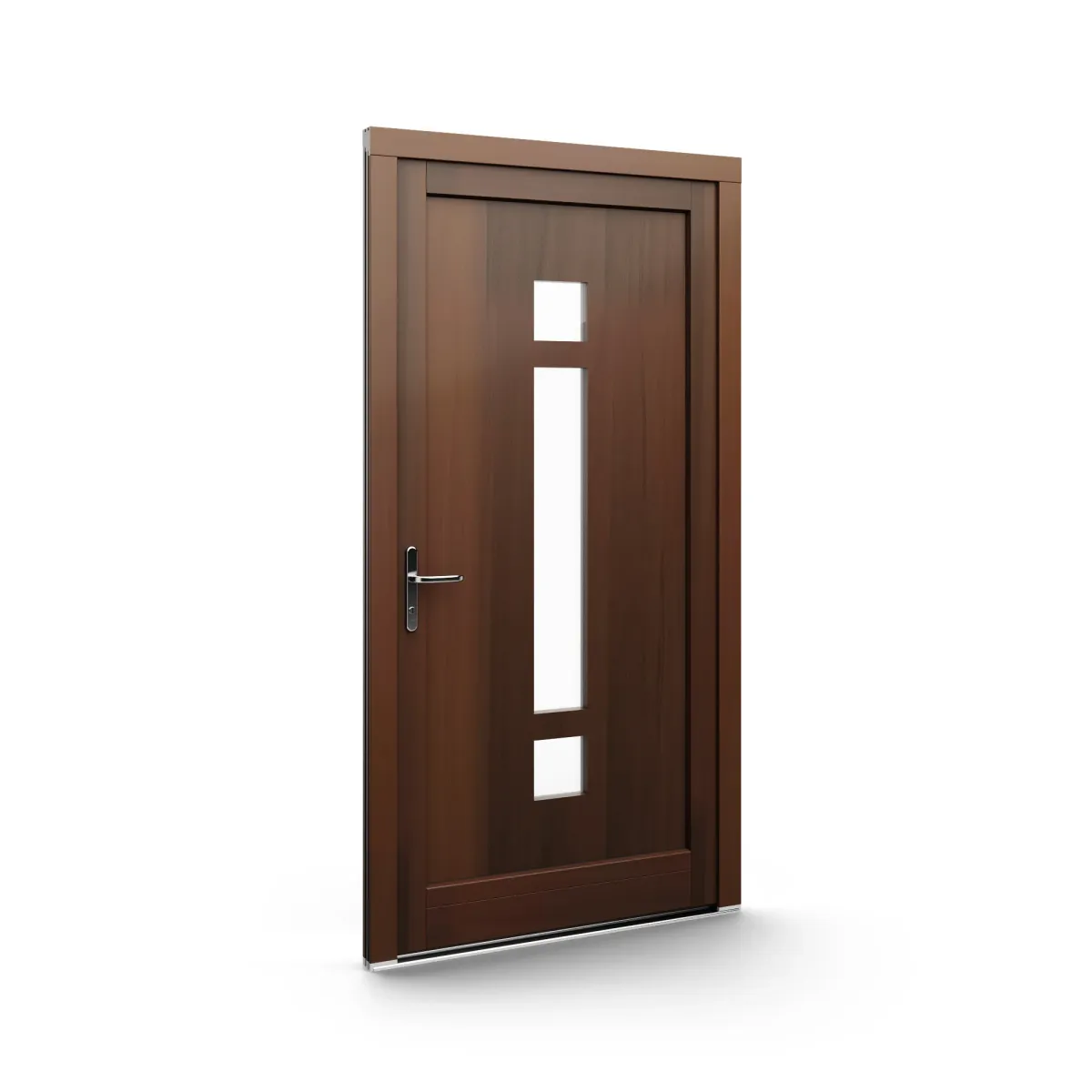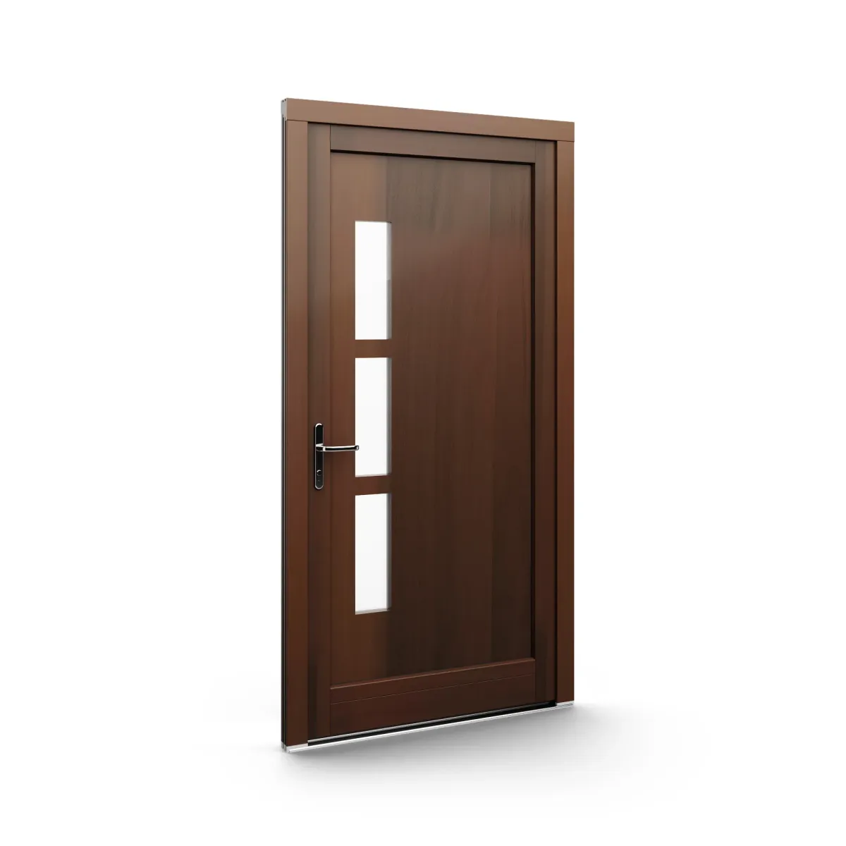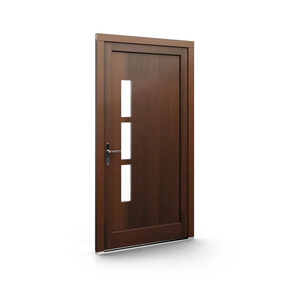 GJ WoodLine verbindet traditionelle Optik mit moderner Paneeltechnik: mehrschichtig aufgebaute Holzpaneele mit wärmedämmendem Kern, Sicherheitsverglasung und zwei eleganten Front-Varianten. Das Ergebnis sind Haustüren mit natürlicher Ausstrahlung, langlebiger Qualität und zeitlosem Stil – für Eingänge, die Bestand haben.