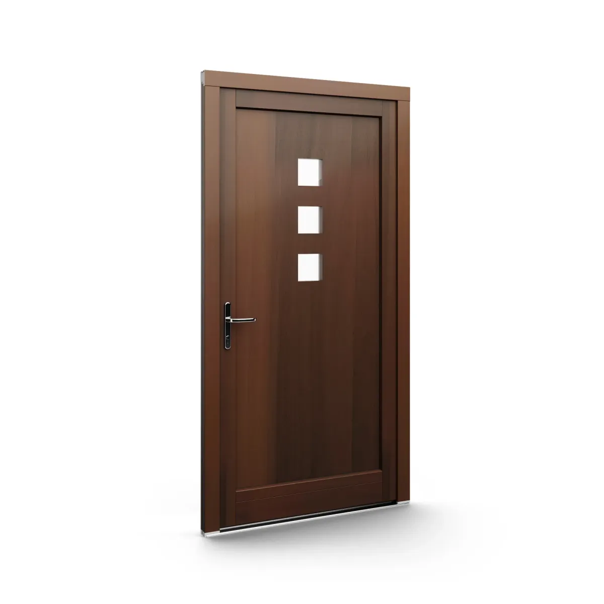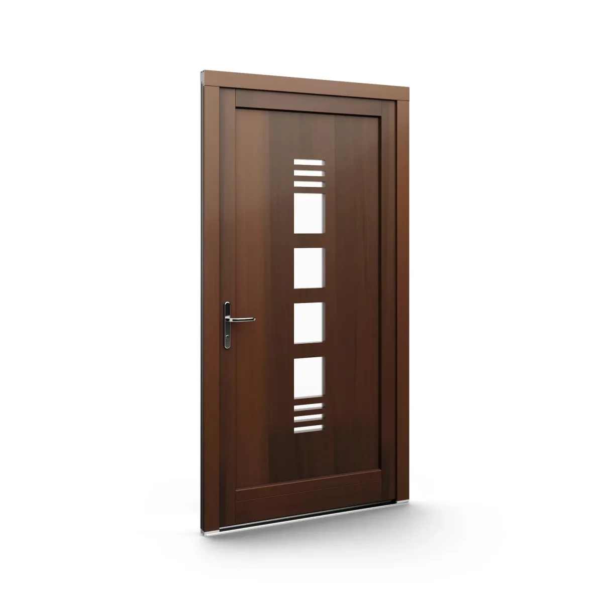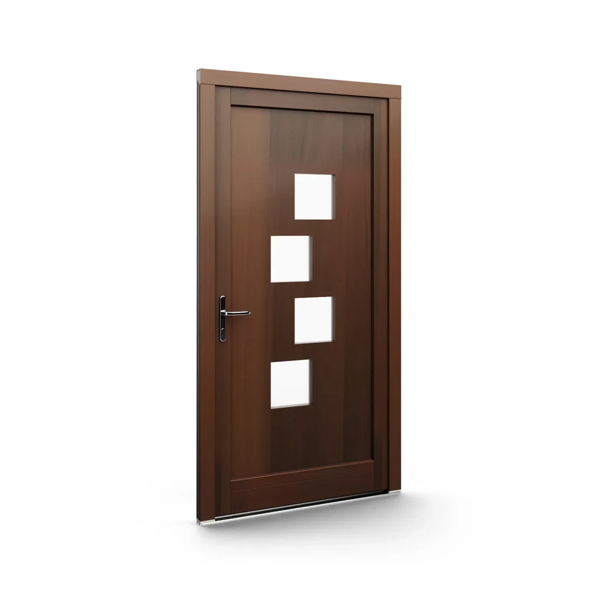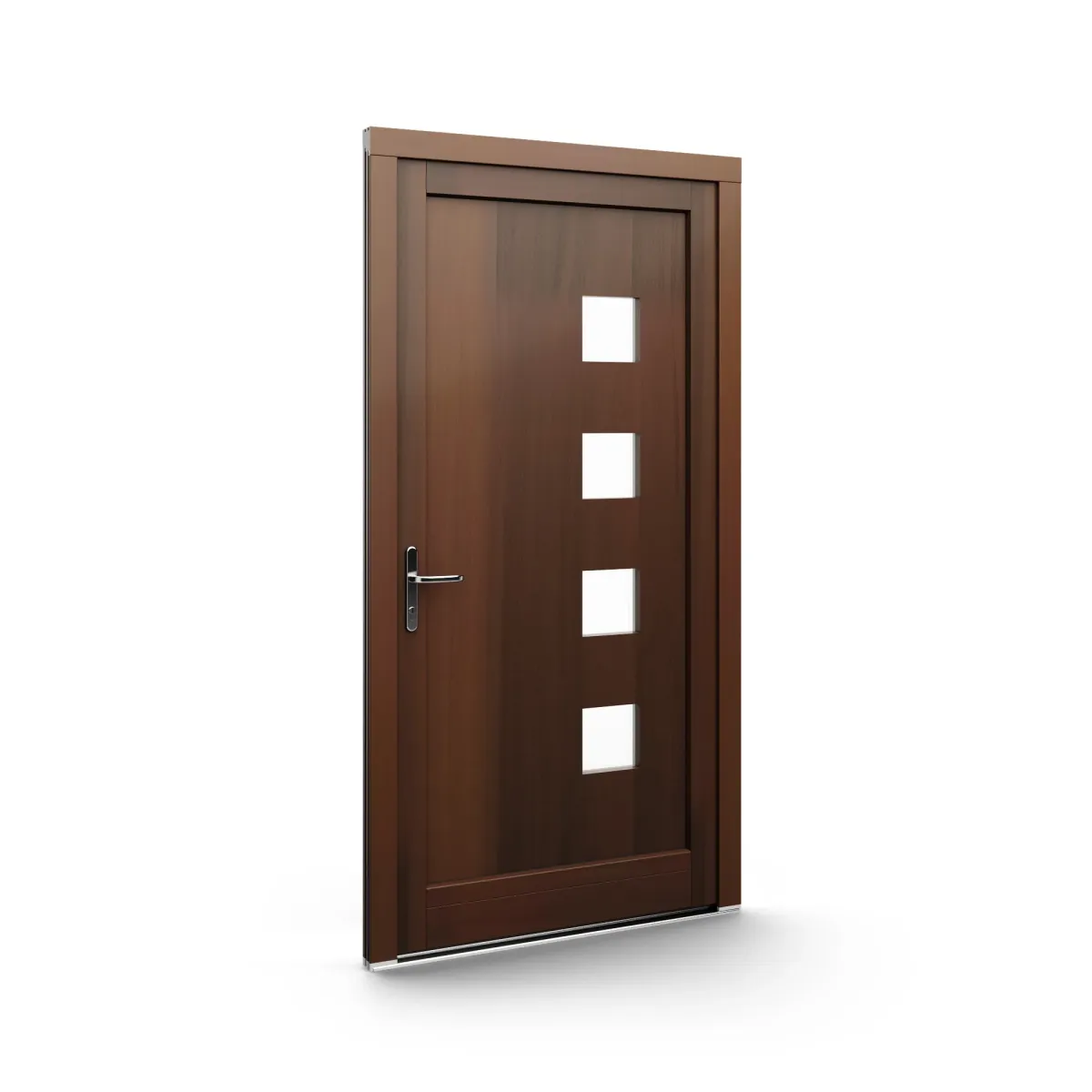 GJ WoodLine verbindet traditionelle Optik mit moderner Paneeltechnik: mehrschichtig aufgebaute Holzpaneele mit wärmedämmendem Kern, Sicherheitsverglasung und zwei eleganten Front-Varianten. Das Ergebnis sind Haustüren mit natürlicher Ausstrahlung, langlebiger Qualität und zeitlosem Stil – für Eingänge, die Bestand haben.