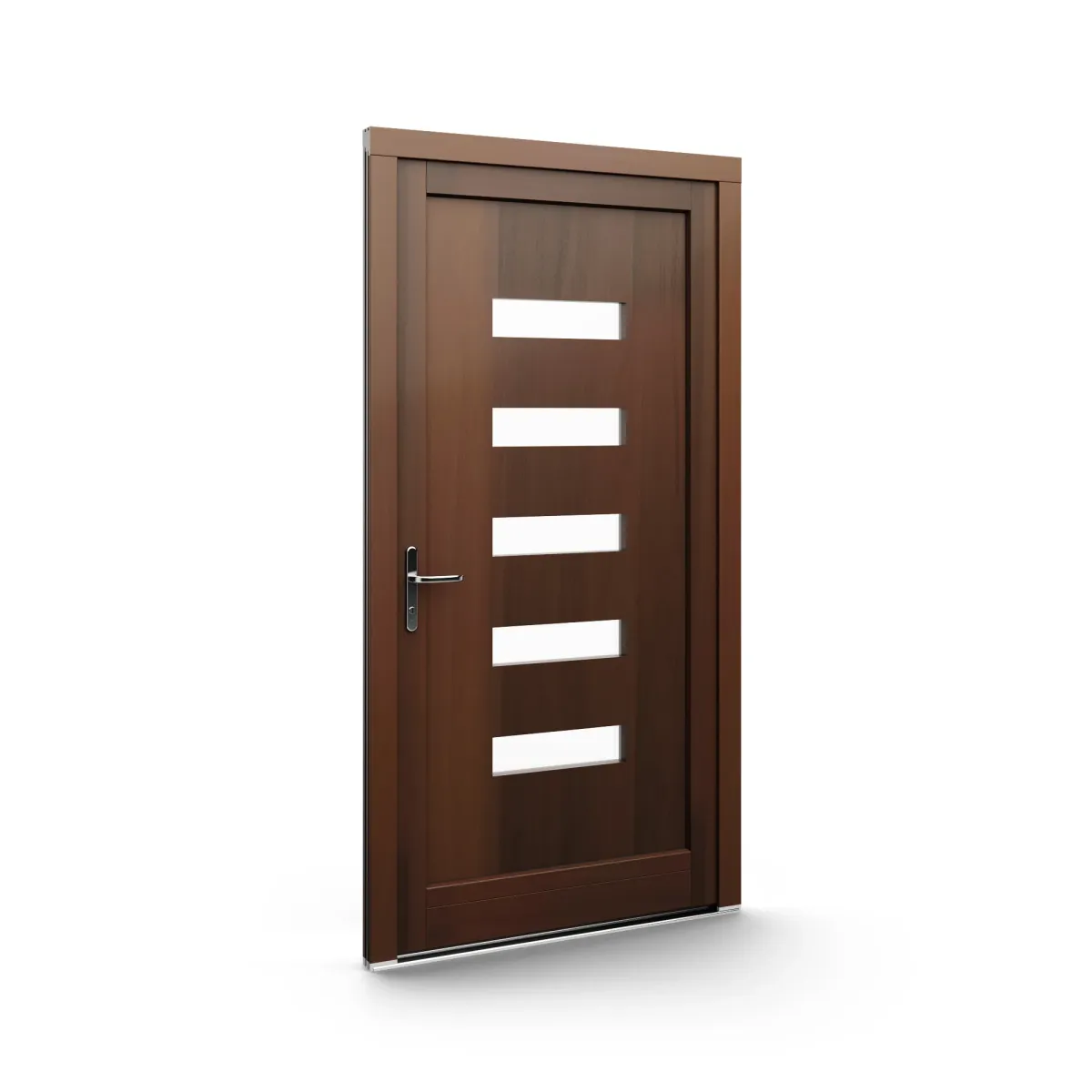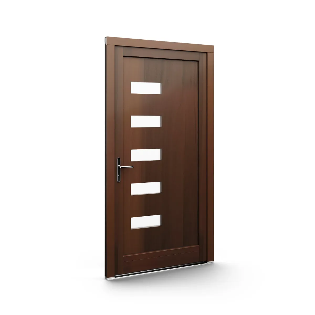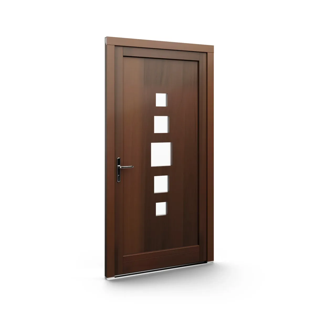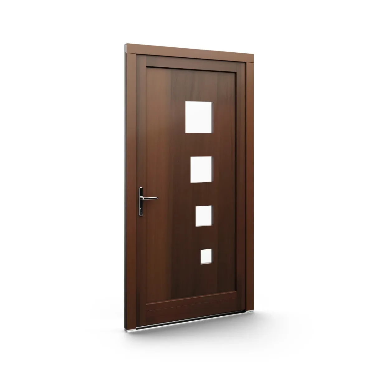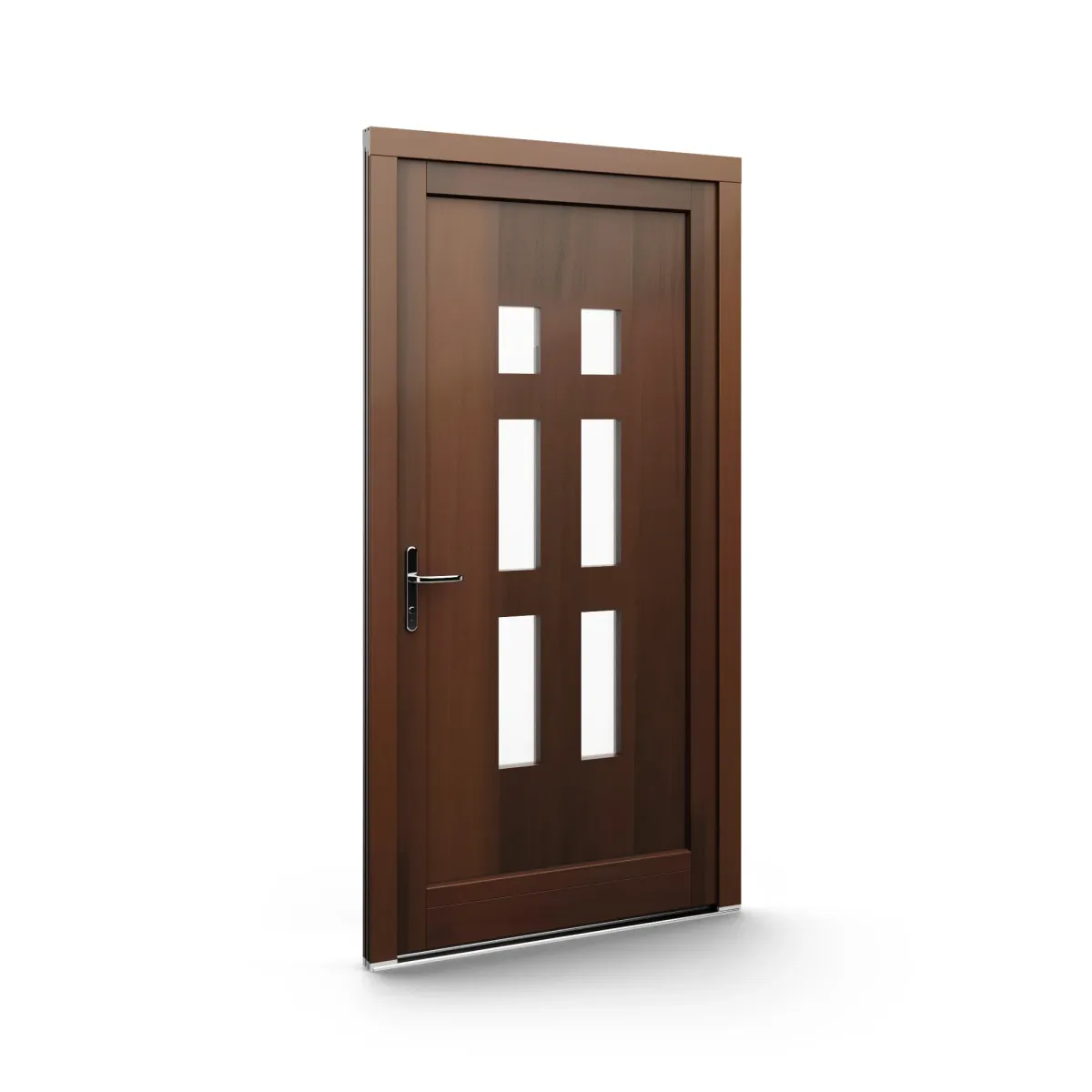 GJ WoodLine verbindet traditionelle Optik mit moderner Paneeltechnik: mehrschichtig aufgebaute Holzpaneele mit wärmedämmendem Kern, Sicherheitsverglasung und zwei eleganten Front-Varianten. Das Ergebnis sind Haustüren mit natürlicher Ausstrahlung, langlebiger Qualität und zeitlosem Stil – für Eingänge, die Bestand haben.