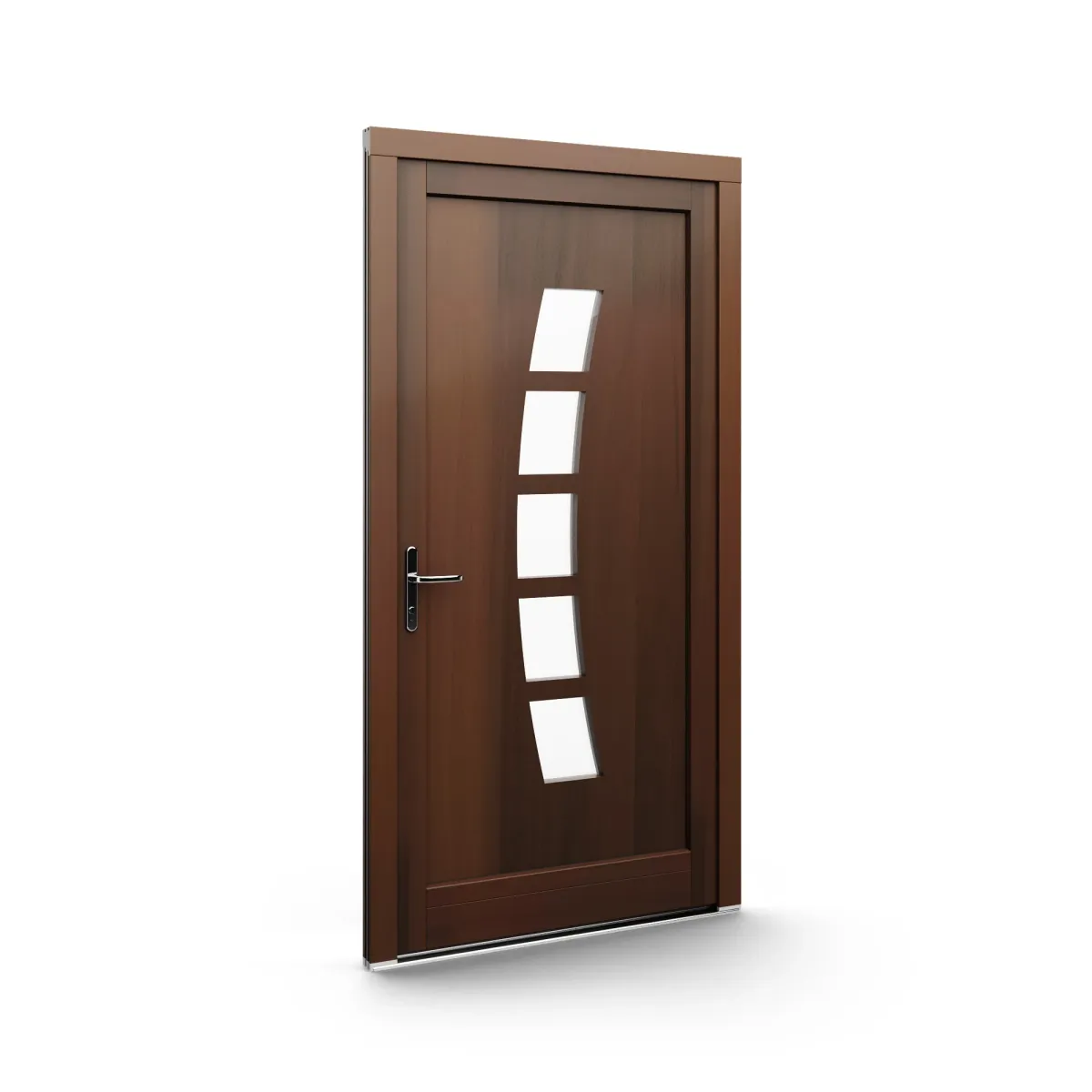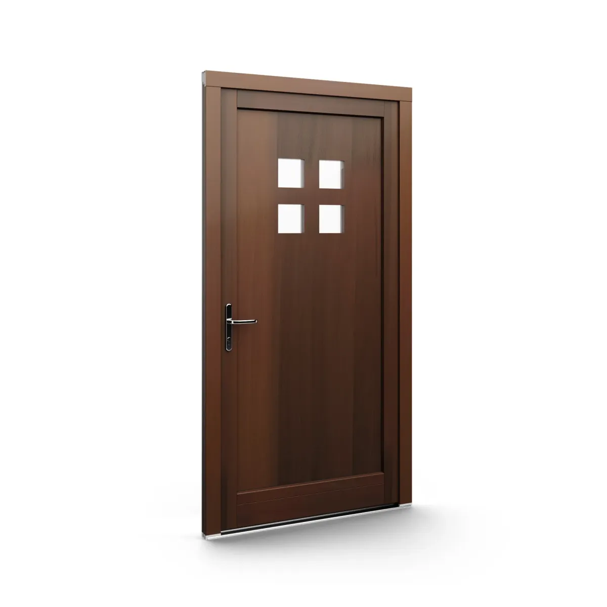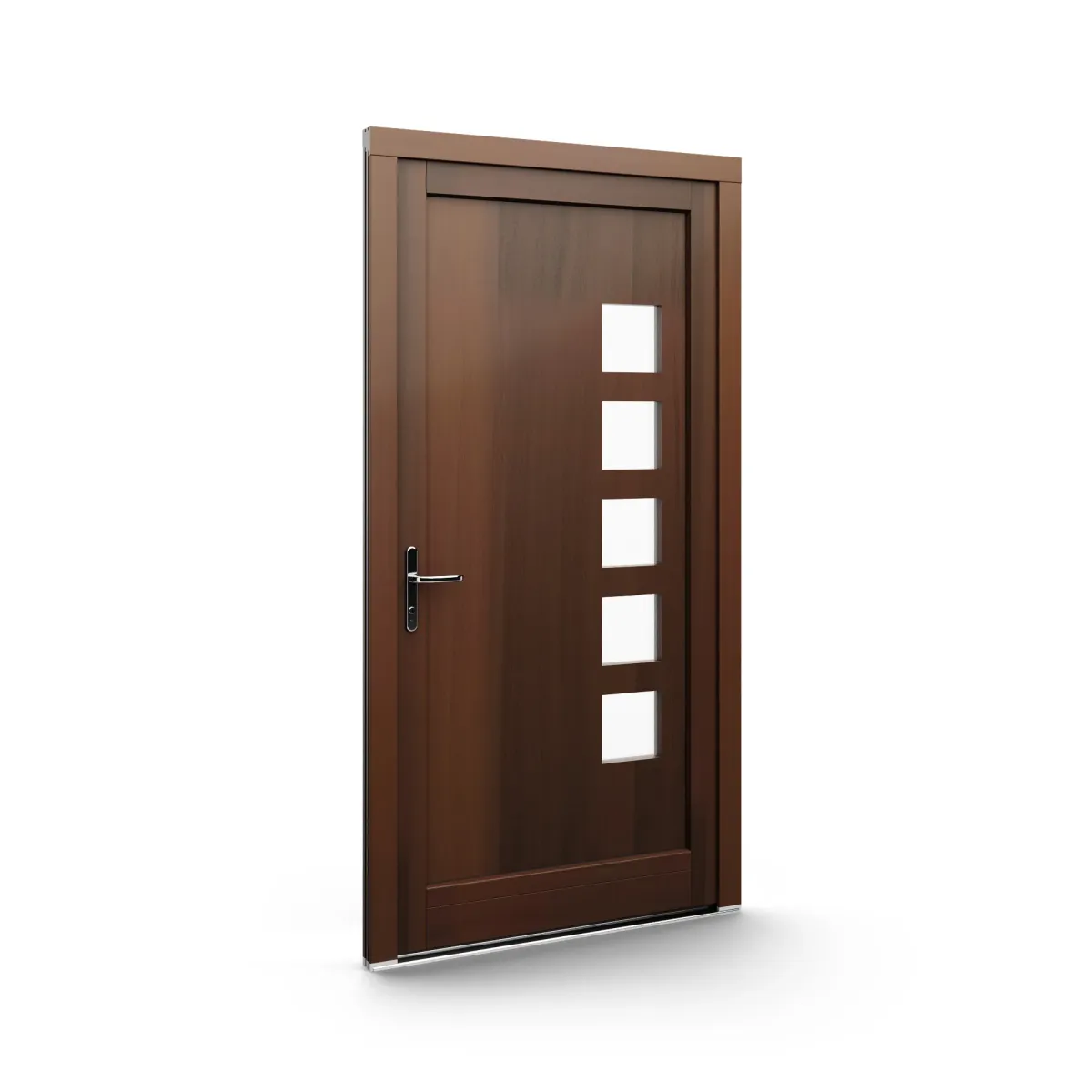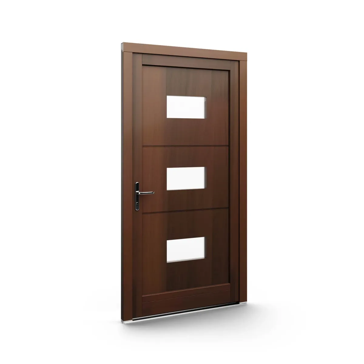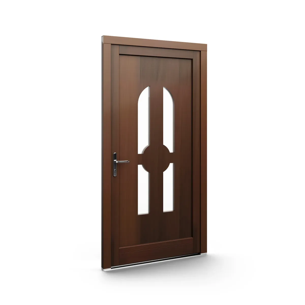 GJ WoodLine verbindet traditionelle Optik mit moderner Paneeltechnik: mehrschichtig aufgebaute Holzpaneele mit wärmedämmendem Kern, Sicherheitsverglasung und zwei eleganten Front-Varianten. Das Ergebnis sind Haustüren mit natürlicher Ausstrahlung, langlebiger Qualität und zeitlosem Stil – für Eingänge, die Bestand haben.