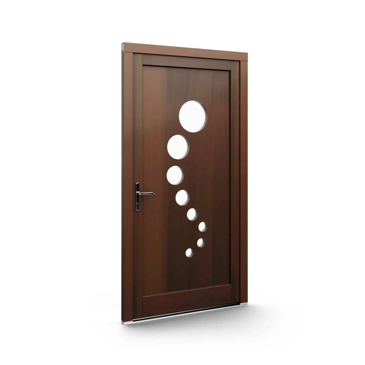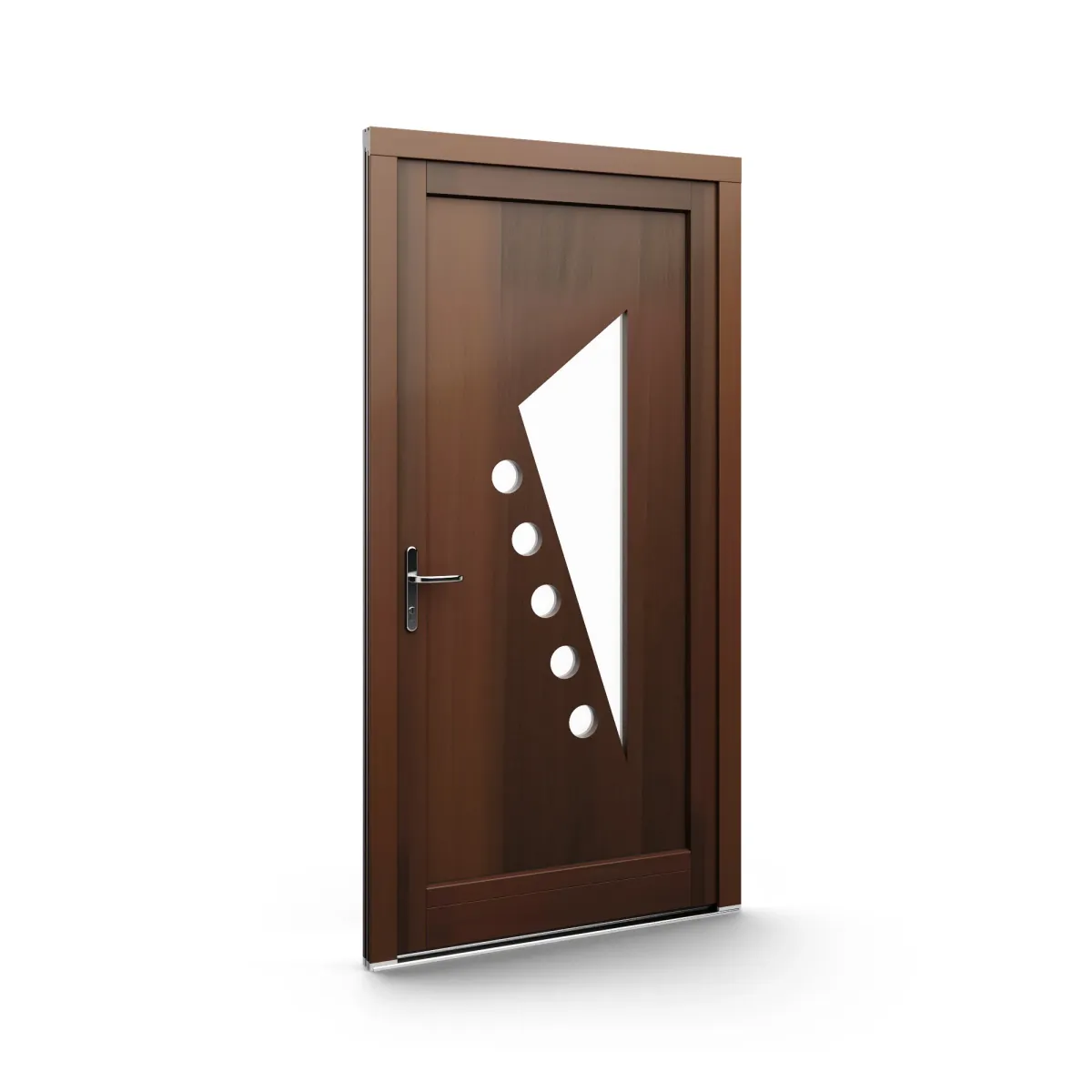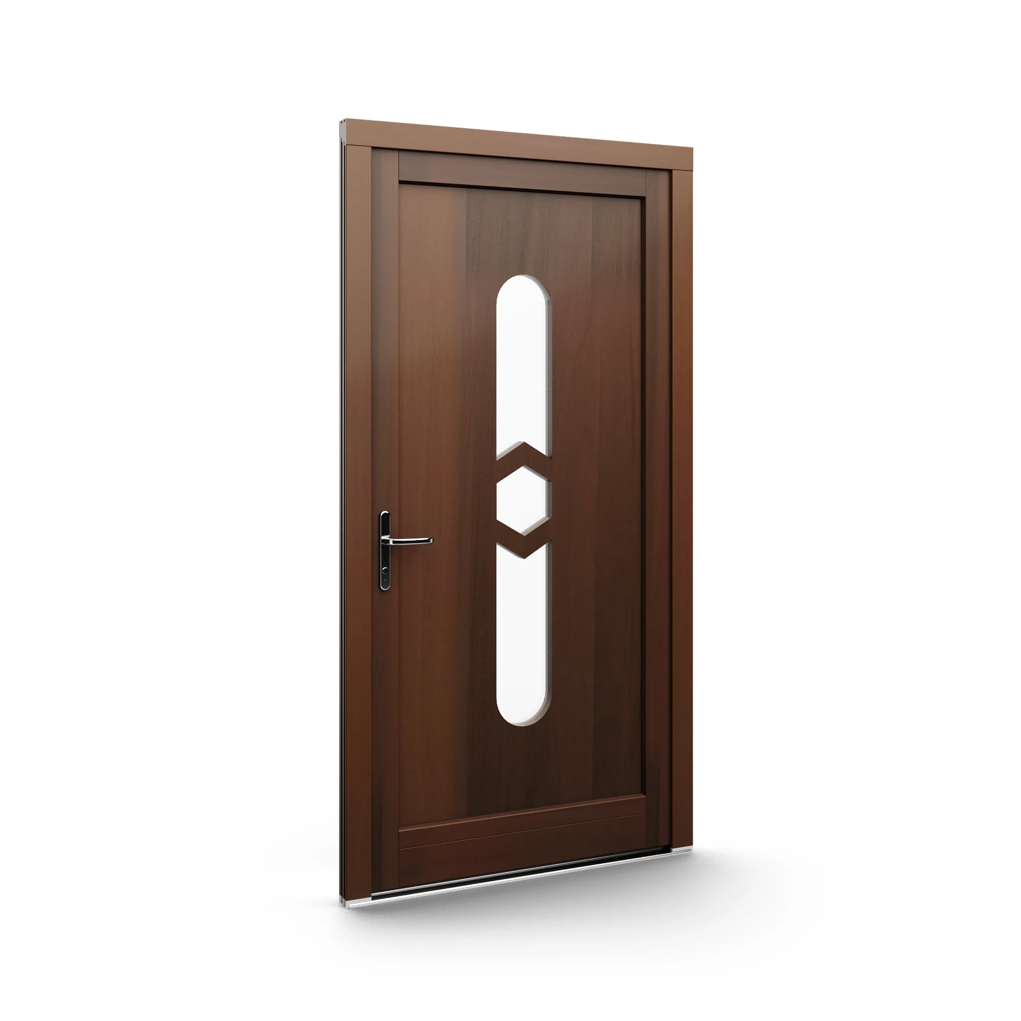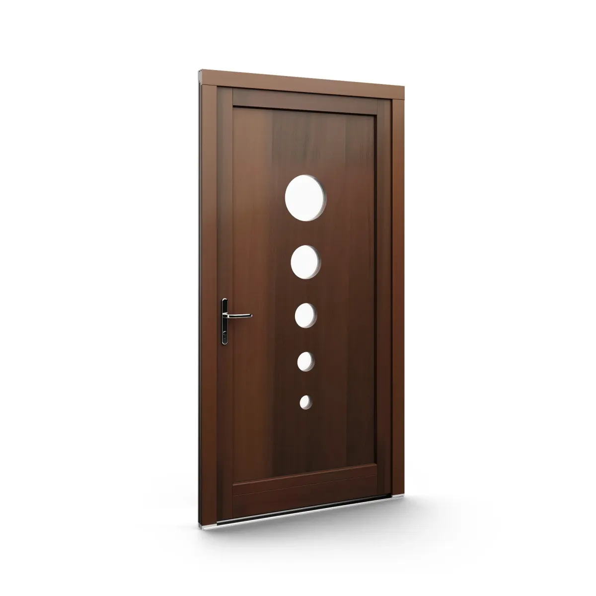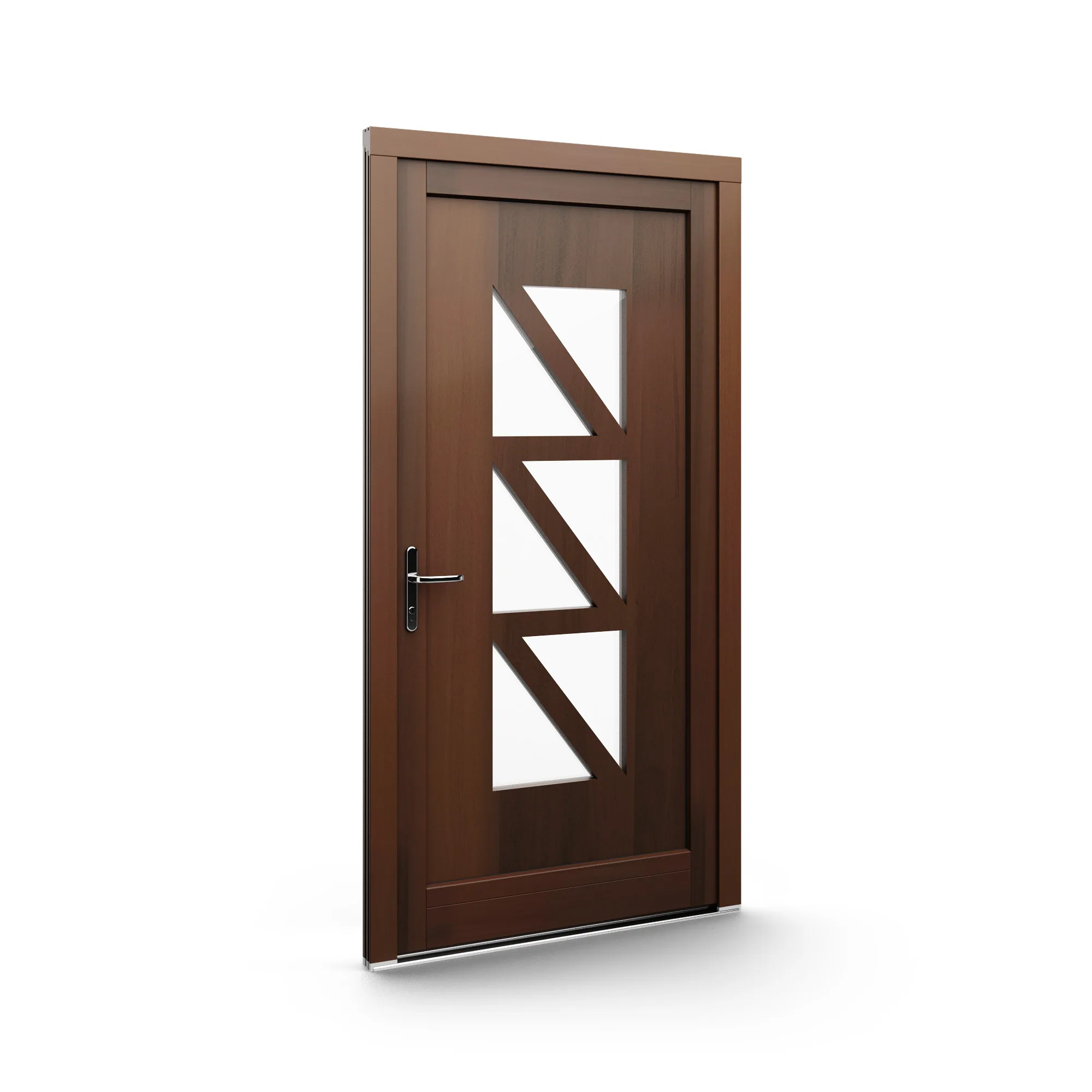 GJ WoodLine verbindet traditionelle Optik mit moderner Paneeltechnik: mehrschichtig aufgebaute Holzpaneele mit wärmedämmendem Kern, Sicherheitsverglasung und zwei eleganten Front-Varianten. Das Ergebnis sind Haustüren mit natürlicher Ausstrahlung, langlebiger Qualität und zeitlosem Stil – für Eingänge, die Bestand haben.